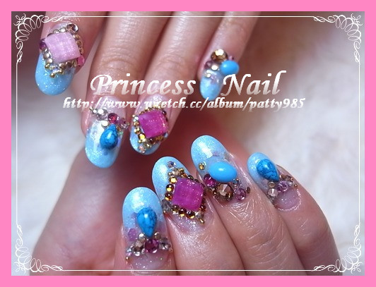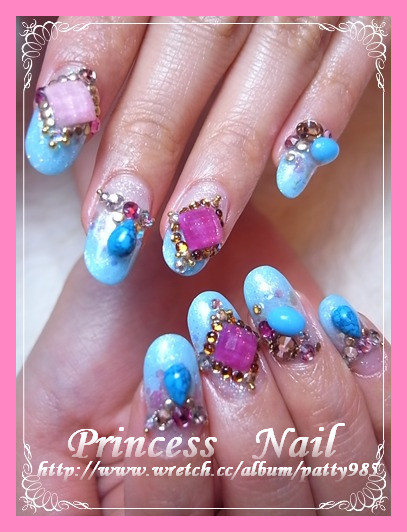 水滴型狀的土耳奇石貼成垂墜感 也有喜華麗的FU呢 !